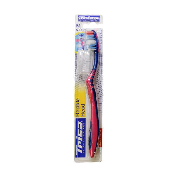 مسواک فلکسیبل هد با برس متوسط تریزا یکی دیگر از محصولات شرکت سوئیسی تریزا است. این محصول دارای طراحی منحصر به فردی است که آن را به یکی از کارآمد ترین مسواکهای موجود در بازار تبدیل میکند. اولین نکته ترکیب و ترتیب چیدمان الیاف برس مسواک مدیوم فلکسیبل هد تریزا است. این مسواک در قسمت جلویی از الیاف بلندی استفاده کرده است که تمیزی فضای دندانها را بهبود میبخشند. دسته این مسواک به شکل W طراحی شده است و به مصرف کننده این امکان را میدهد که به راحتی به دندانهای آسیاب انتهایی نیز دسترسی داشته باشد. اما ویژگی که اسم این مسواک نیز از آن الهام گرفته شده است، ویژگی متحرک بودن و منعطف بودن قسمت برس مسواک است. گردن متحرک مسواک همچون فنر عمل میکند و با تنظیم فشار امکان تمیزی هر چه کاملتر دندانها و لثهها را فراهم میآورد. مسواک فلکسی بل هد تریزا دارای تمیز کننده زبان در قسمت پشت مسواک نیز هست که باکتریهای روی زبان را از بین میبرد و به رفع بوی بد دهان کمک میکند.